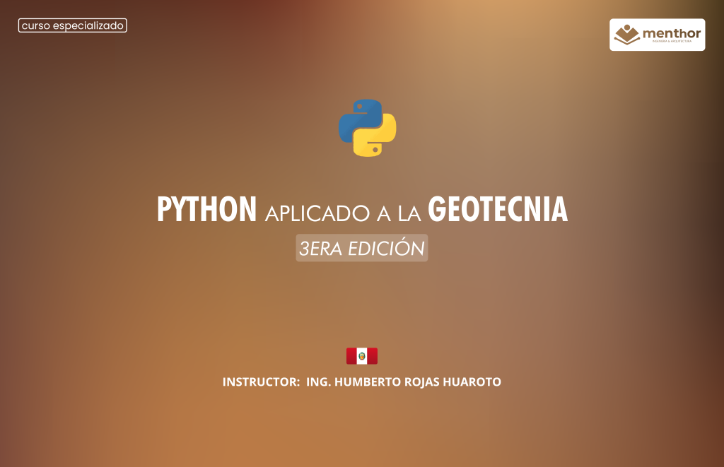 Dirigido a estudiantes y egresados de ingeniería civil, ingeniería de minas o carreras afines, quienes deseen profundizar en el uso de lenguajes de programación en el sector geotécnico, mediante el desarrollo de códigos Python para la automatización de procedimientos clave, desarrollo de aplicaciones web y procesamiento de instrumentación geotécnica.